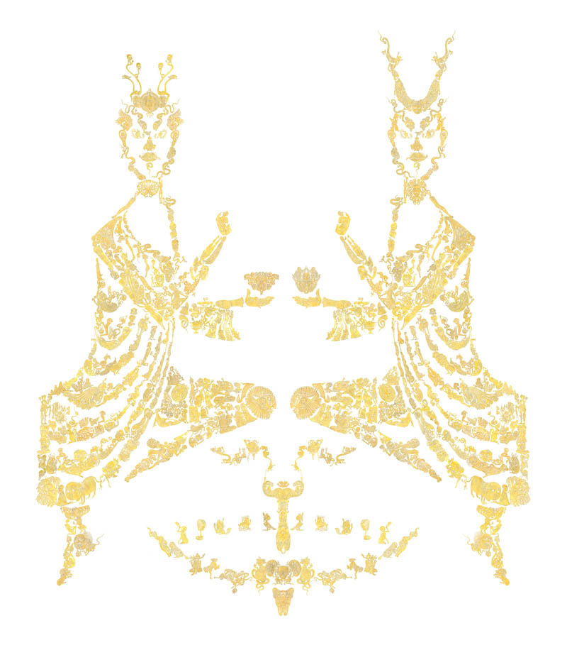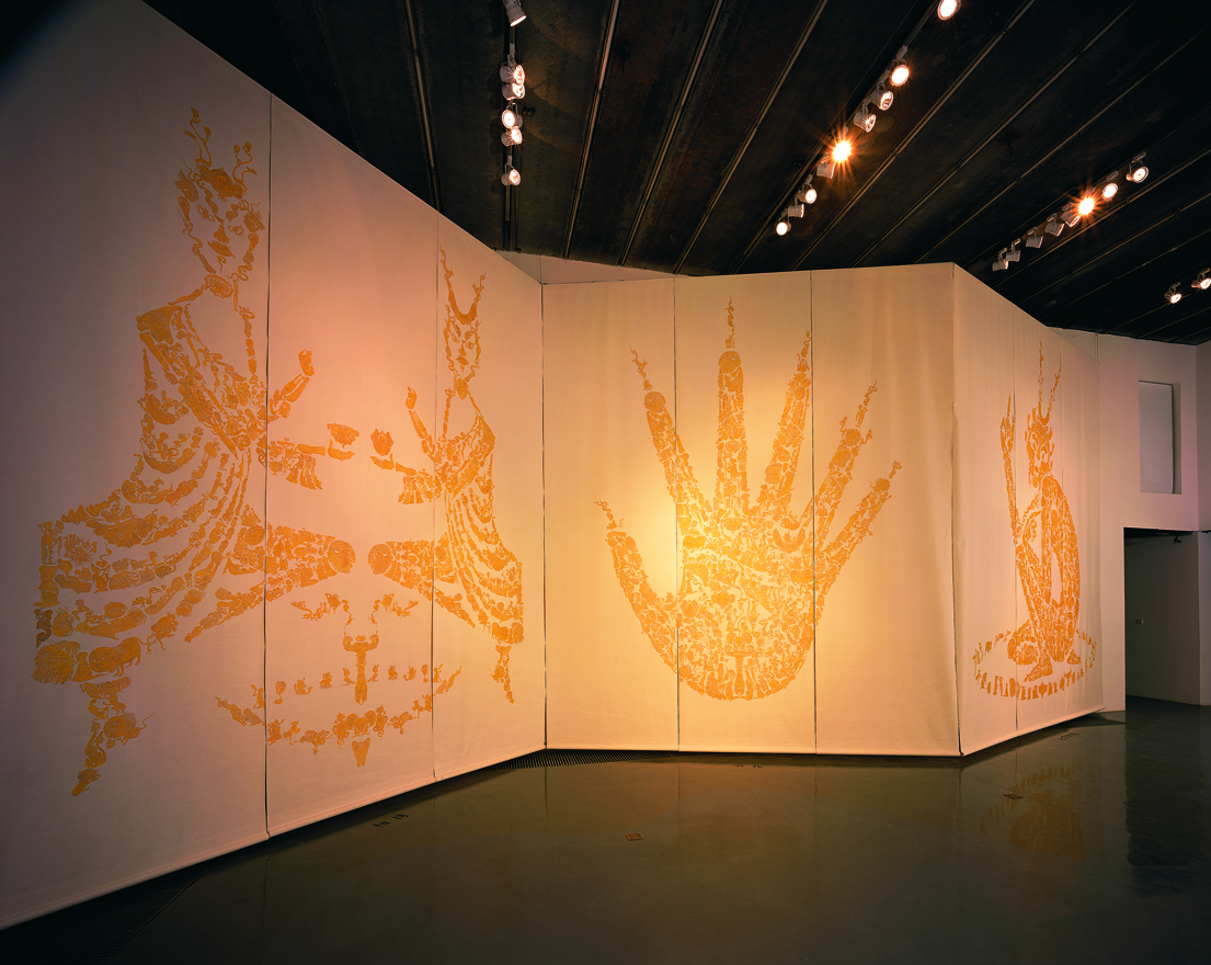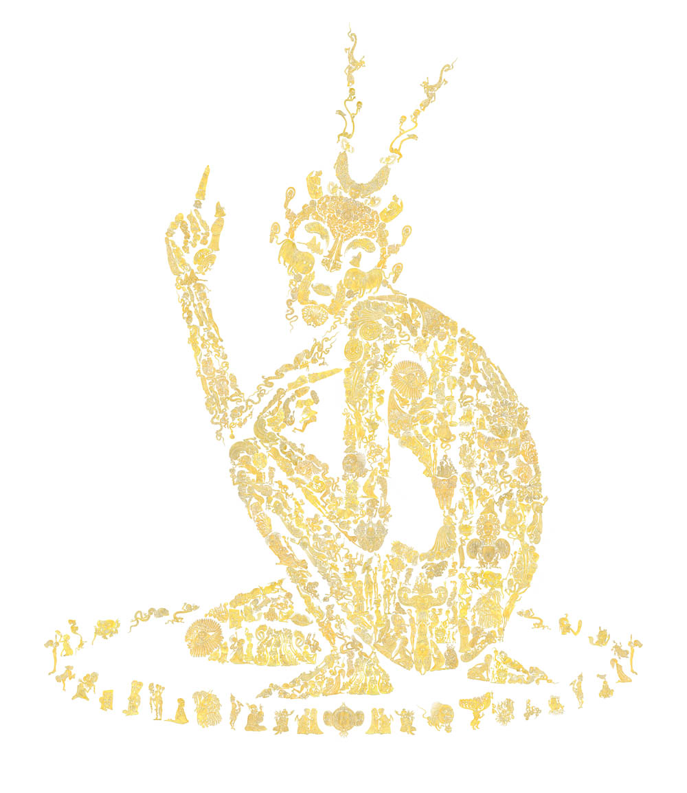 手工着色和浸蜡镂空剪纸,棉线,宣纸,绢