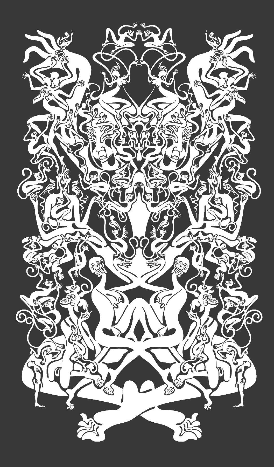 熟悉“化身”系列的观者会很容易发现,构成这些代表着自然秩序的动物肖像,由艺术家于2011年创作的《七层壳》中的形象拼组而成,这些小的形象共186种,可分成人体器官、神话或历史英雄、典故演绎、身体或社会行为、文学作品中的形象、隐喻之物以及虚幻的妖魔7组。这些“小人”在不同的作品中的数量、色彩、位置各异,如身体的细胞各司其职,与其所组成的微笑着的动物一同凝视着猎物以及我们。在某种意义上,《七层壳》可被称为艺术家的视觉辞典,而其所衍生出来的众多“化身”系列作品,通过反复实践一个原型在不同场景中拥有众多化身的方式,暗示我们所身处的现实世界也在某种循环中。