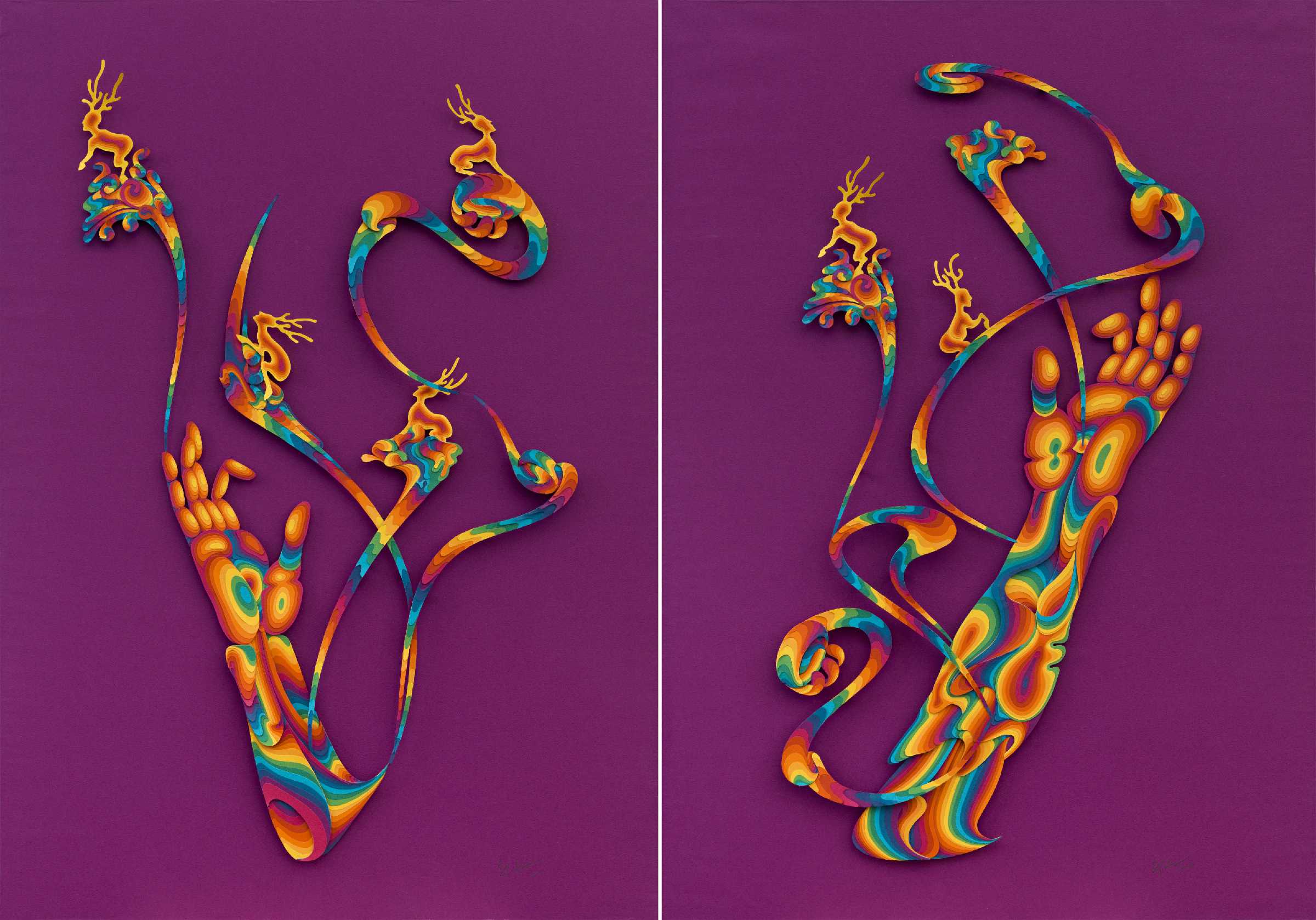 《彩云气-紫气》,特种纸剪贴,每件89x64cm,一组两件,2012©邬建安