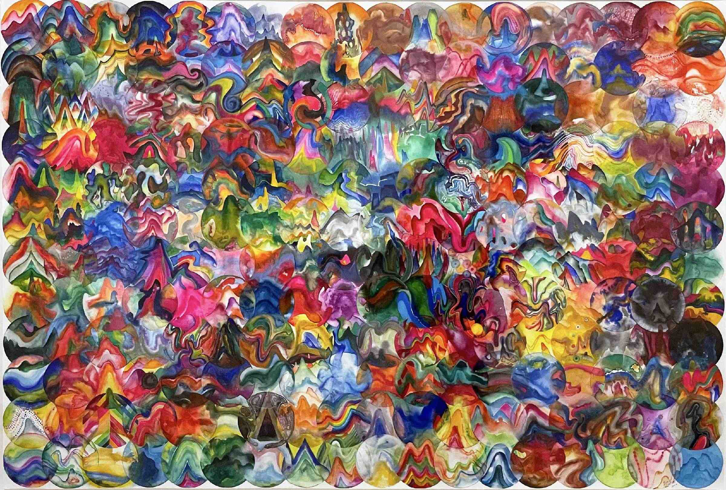 《216颗彩色圆球(北斗)》,纸本水彩,89x131 cm,2014©邬建安