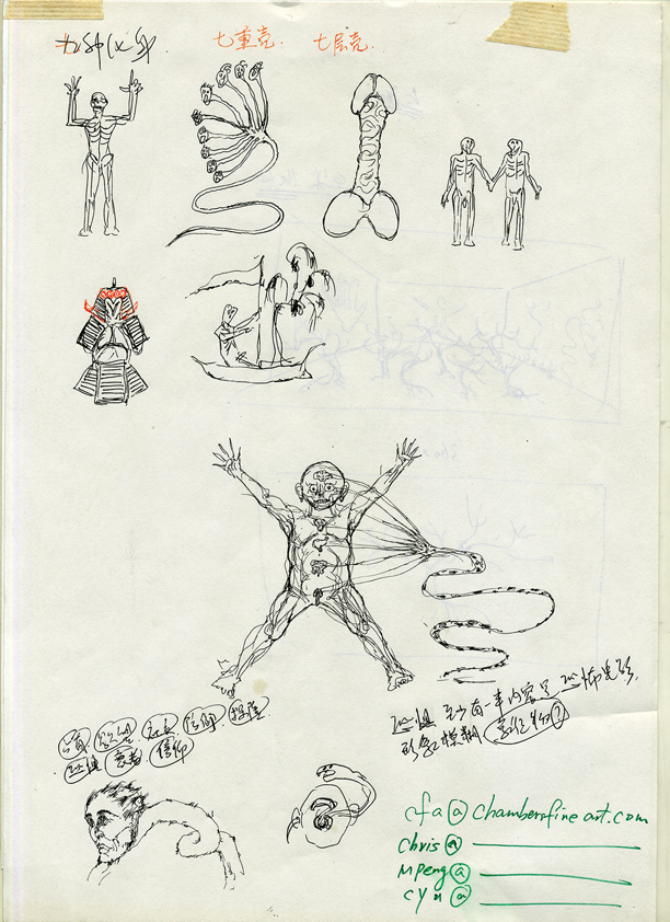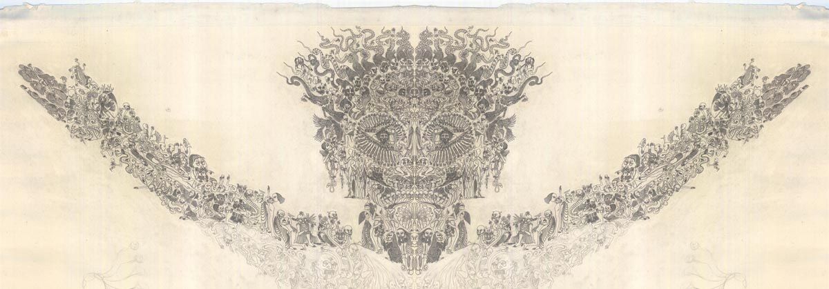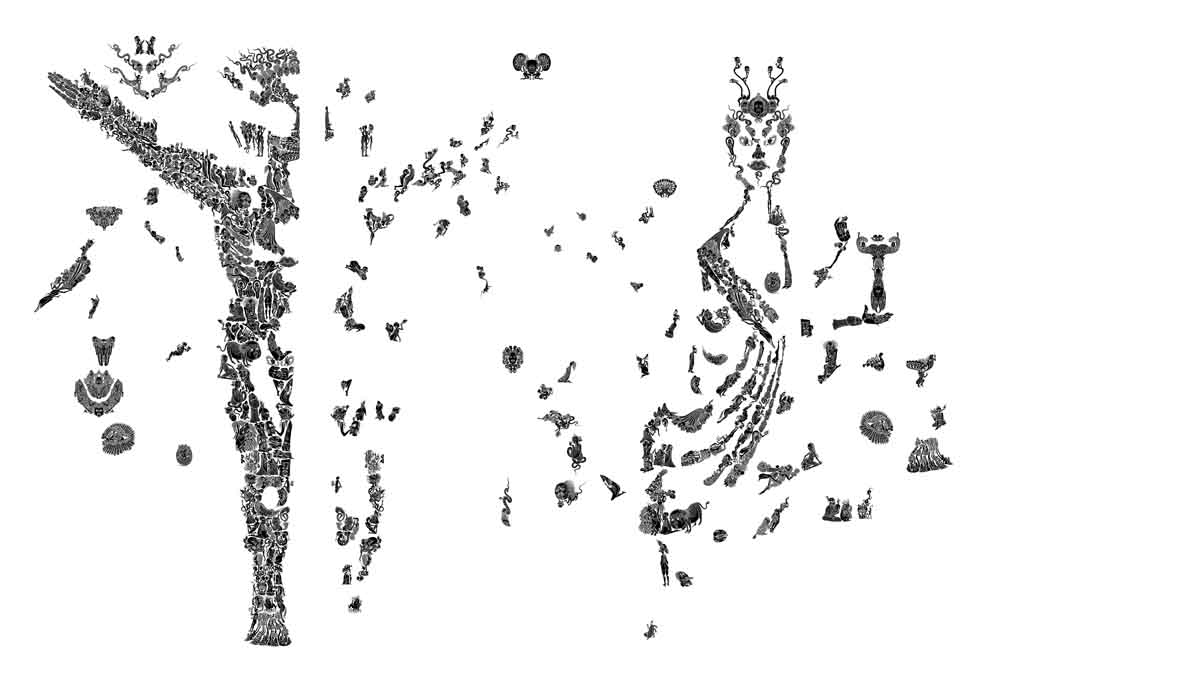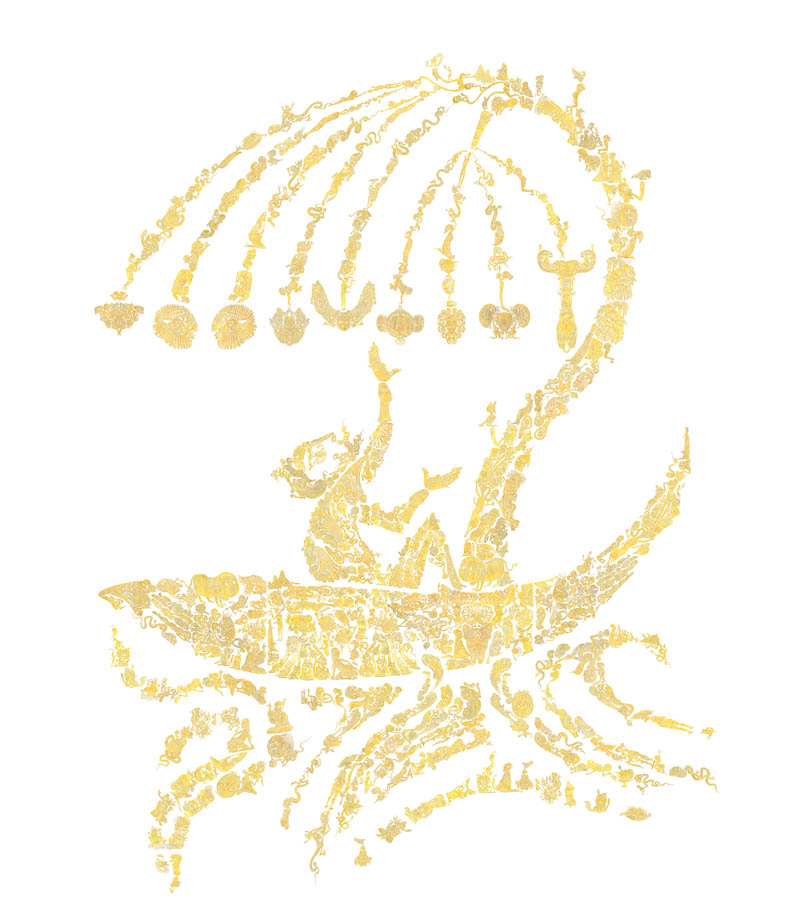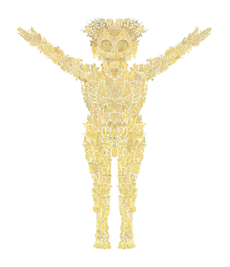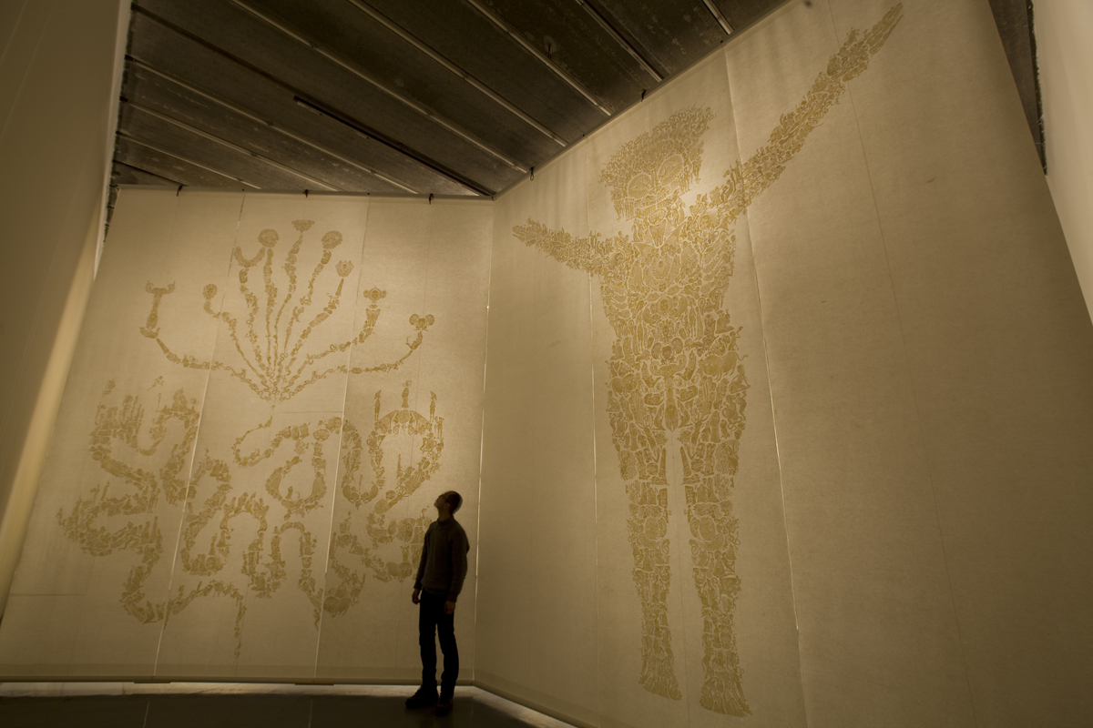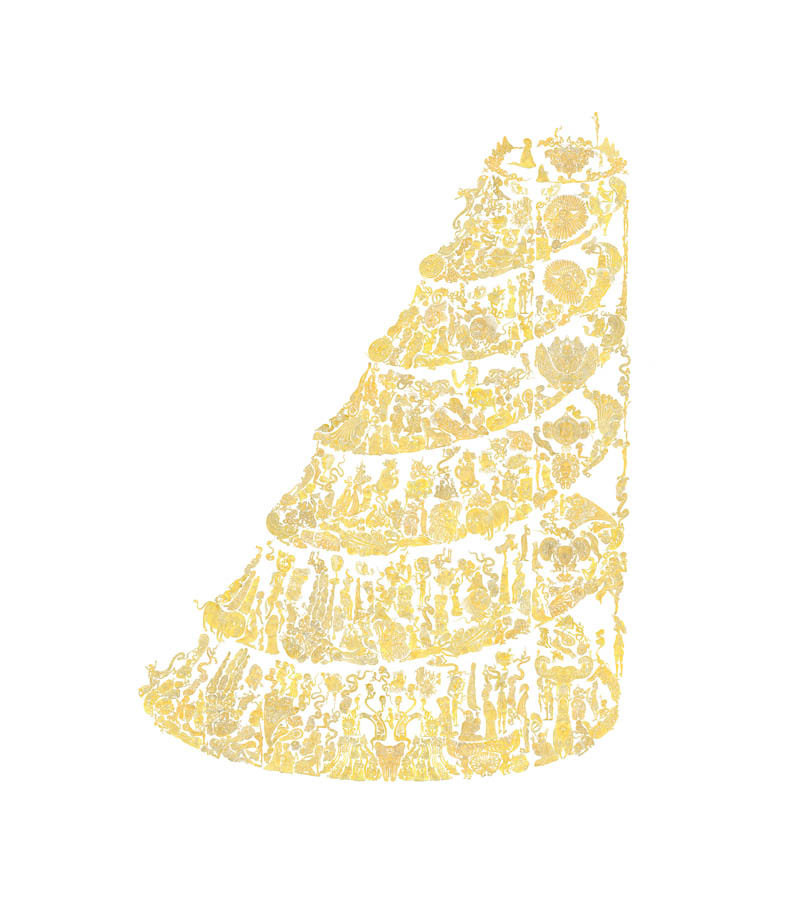 手工着色和浸蜡镂空剪纸,棉线,宣纸,绢
