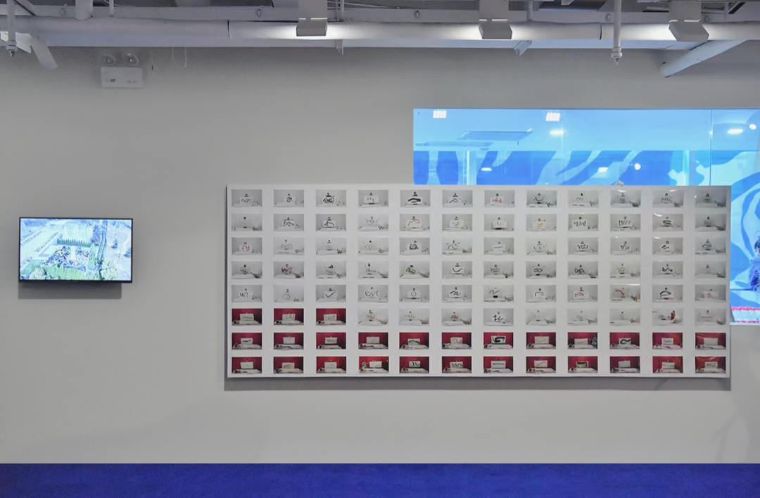 历史以来对“⽆字”的⽆数种解说是不同个体与武则天的⼀次次对话,与这位⼥皇帝永相依存的⽆字碑也成为了沟通古今的⽂化坐标,其不⾔、不论的状态为艺术家在五百笔当中所追寻的另⼀层阐释创造了更多想象的可能。⼀个历史的缩影,⼀场当代群像的灵魂凝筑,两者在超脱于⽂字的“潜意识”情境中,达到艺术家透过视觉背后,所追寻的中国传统脉络与当代的相遇。当整件作品既是⼀幅跃动着勃勃⽣机的“当代西安群像”,又是⼀件巨型地景艺术的⽅案——以笔画象征个⼈,与唐代恢弘的巨⼤⽯碑展开⼀场跨越千年的⽆声对谈。配合展厅墙⾯上呈现的巨幅⽆字碑摄影,犹如⼀场戏剧,泱泱千年,“碑”相尚存,众⼈不吐⼀字,但其意绵长。